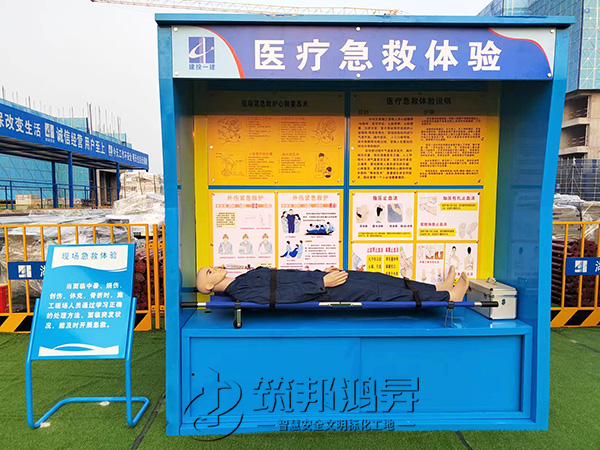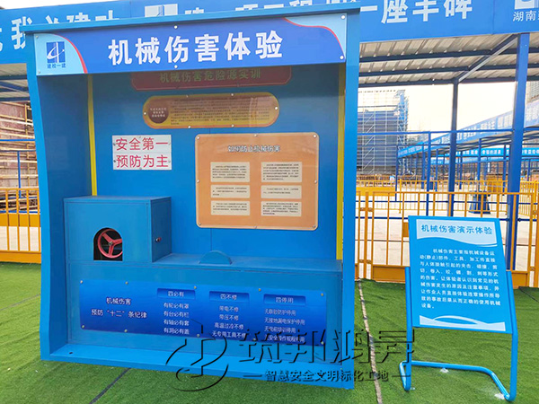 此次合作的安全教育培訓(xùn)體驗(yàn)區(qū)建設(shè)包括了機(jī)械傷害體驗(yàn)、醫(yī)療急救體驗(yàn)、安全帶使用體驗(yàn)、勞保用品展示體驗(yàn)、洞口墜落體驗(yàn)、消防滅火體驗(yàn)、安全帽/鞋撞擊體驗(yàn)等。鈑金款安全體驗(yàn)區(qū)設(shè)備采用全鋼鈑金設(shè)計(jì),美觀醒目。筑邦安排專(zhuān)車(chē)送貨到湘潭工地,同時(shí)安排了專(zhuān)業(yè)人手迅速到工地加班加點(diǎn)完成安裝。