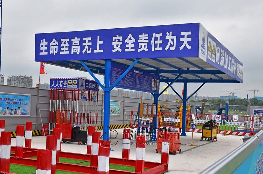 6月21日,2022年長(zhǎng)沙市建筑工程質(zhì)量管理和安全生產(chǎn)標(biāo)準(zhǔn)化觀摩會(huì)在長(zhǎng)沙市市政工程承辦的靳江河西岸綜合整治工程設(shè)計(jì)施工總承包(EPC)項(xiàng)目舉行。筑邦鴻昇系列文明標(biāo)化產(chǎn)品助力。